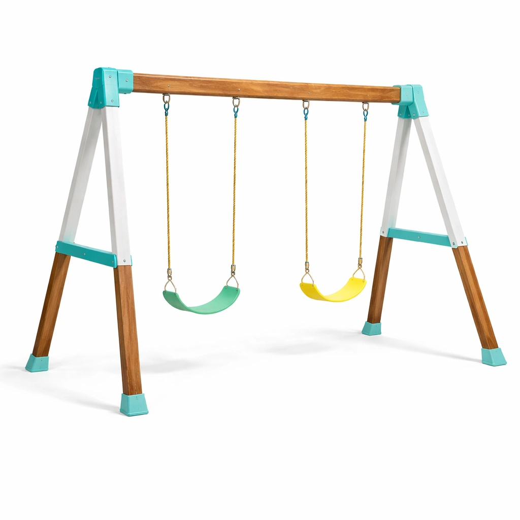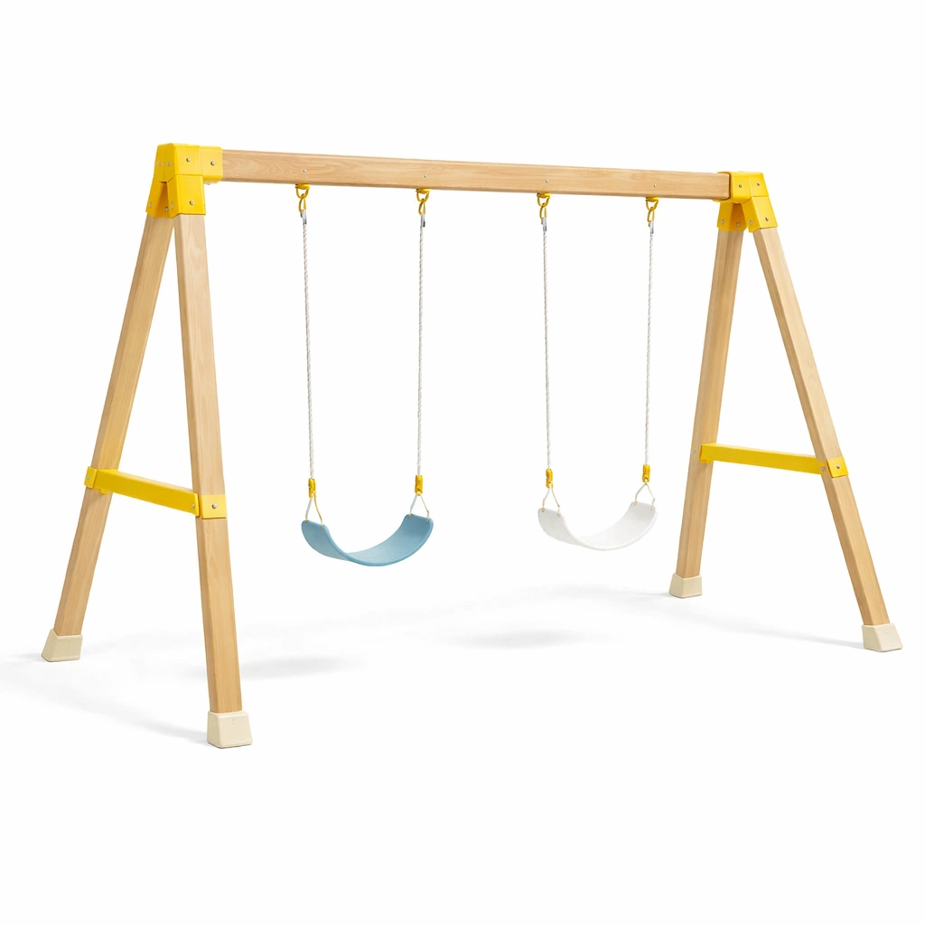 Schaukelset kinderschaukelgestell aus holz und metall mit kunststoffschaukeln