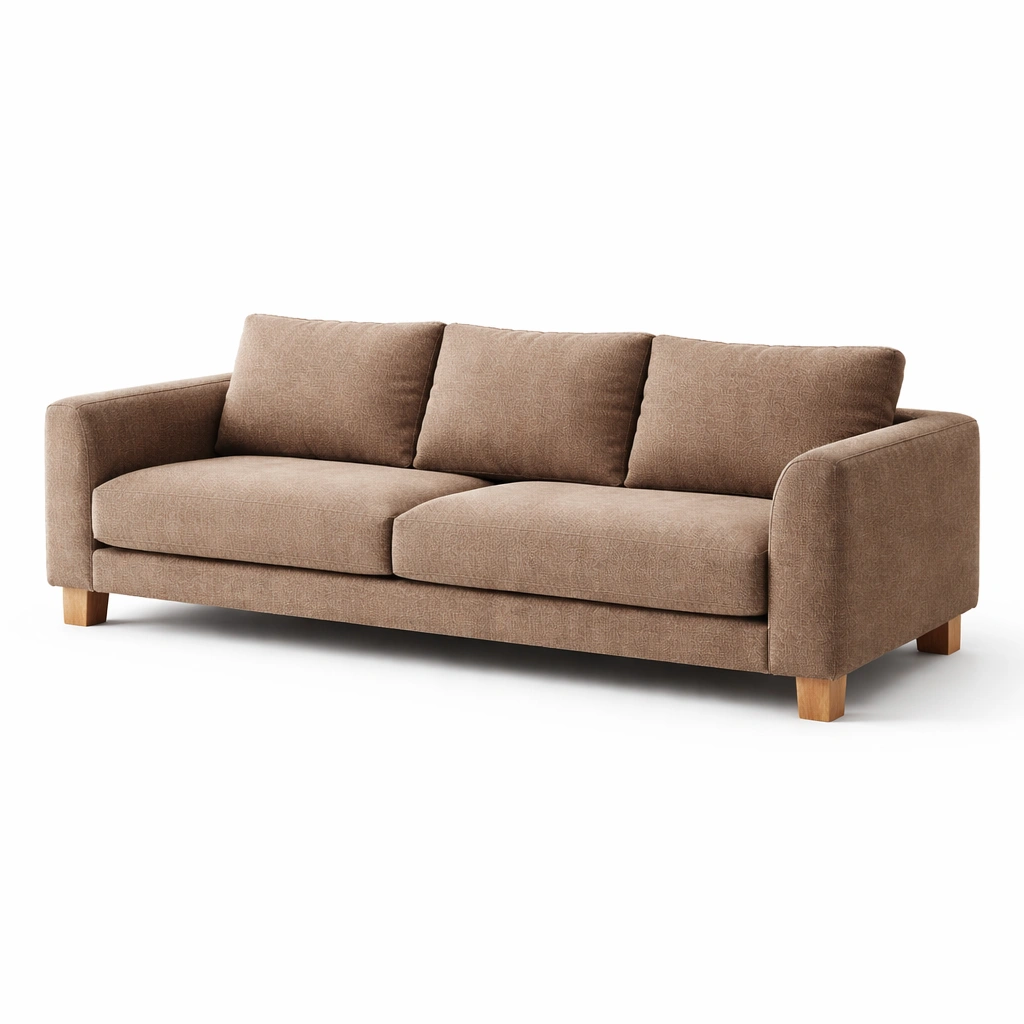 Sofa stoff braun eichenholzfüße