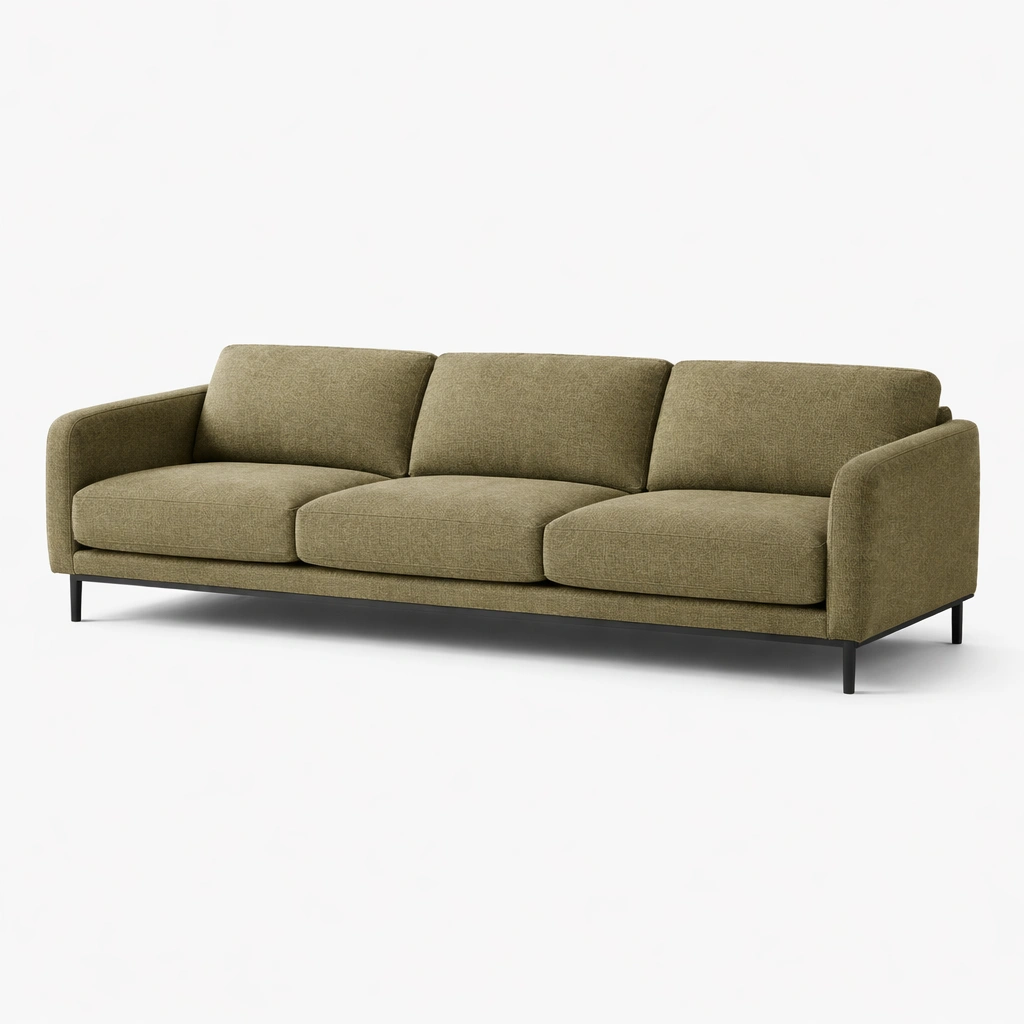 Sofa olivgrün stoff metallfüße 220x85x75 cm