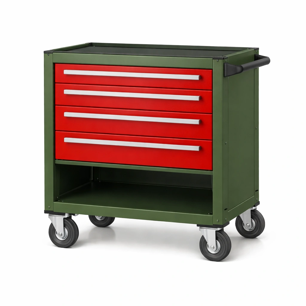 Teile: 4 Schubladen, 4 Rollen